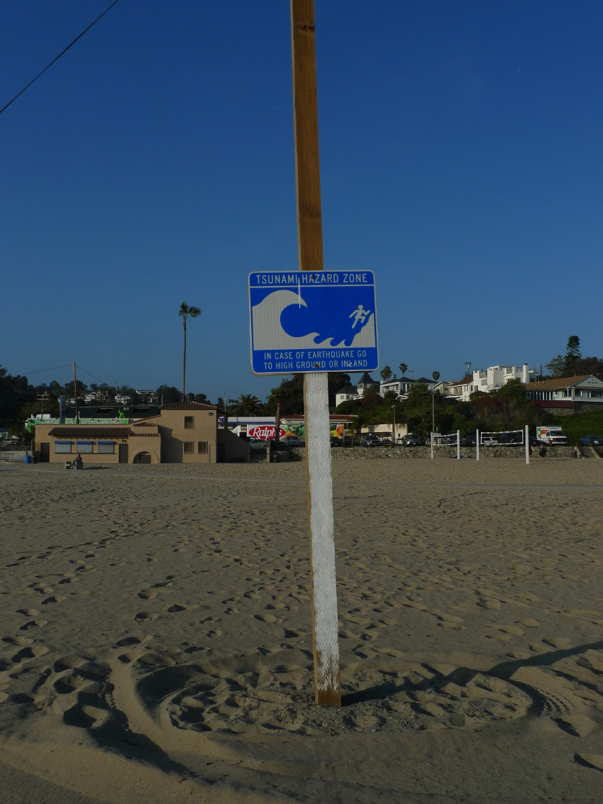 (Still, it is a good thing to remember that tsunami waves travel about as fast as airplanes. So you might want to actually comply with the advice on the sign were you to experience an earthquake on the shore. Just saying.)