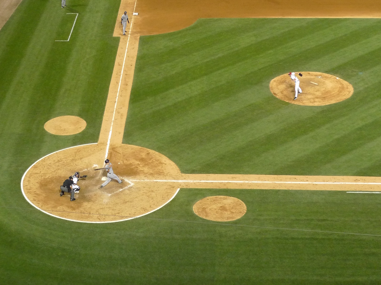 Now here comes the most surprising thing about baseball I’ve learned so far: it’s truly a family game. Certainly, this has to have something to do with its lack of violence (as compared to, e.g., American football) and the transparency of each player’s behavior on the field, leaving way less space for playing dirty (and thus inviting setting a moral example). However, it seems that also the way fans cheer on their teams is entirely different than in other sports. The casual, laid-back atmosphere is almost tangible. The spectators do not care that much for arriving on time (which you can see by comparing the number of occupied seats in the two photos below, first taken a few minutes after the start of the game and second snapped around the 4th inning). Lots of people are having prolonged conversations with their friends during the game, and I dare say that the majority of them has little to do with what is currently happening on the field. Additionally, the game seems to be at least as important as getting drinks, snacks and junk food; I don’t think I really need to mention that getting those takes about 10-20% of the game, and nobody seems to hurry. Despite all that (or, should I say ‘because’?) baseball is truly a national sport in the United States, and the sheer baseball team revenues can cause a vertigo unmatched by that associated with the upper deck’s height.